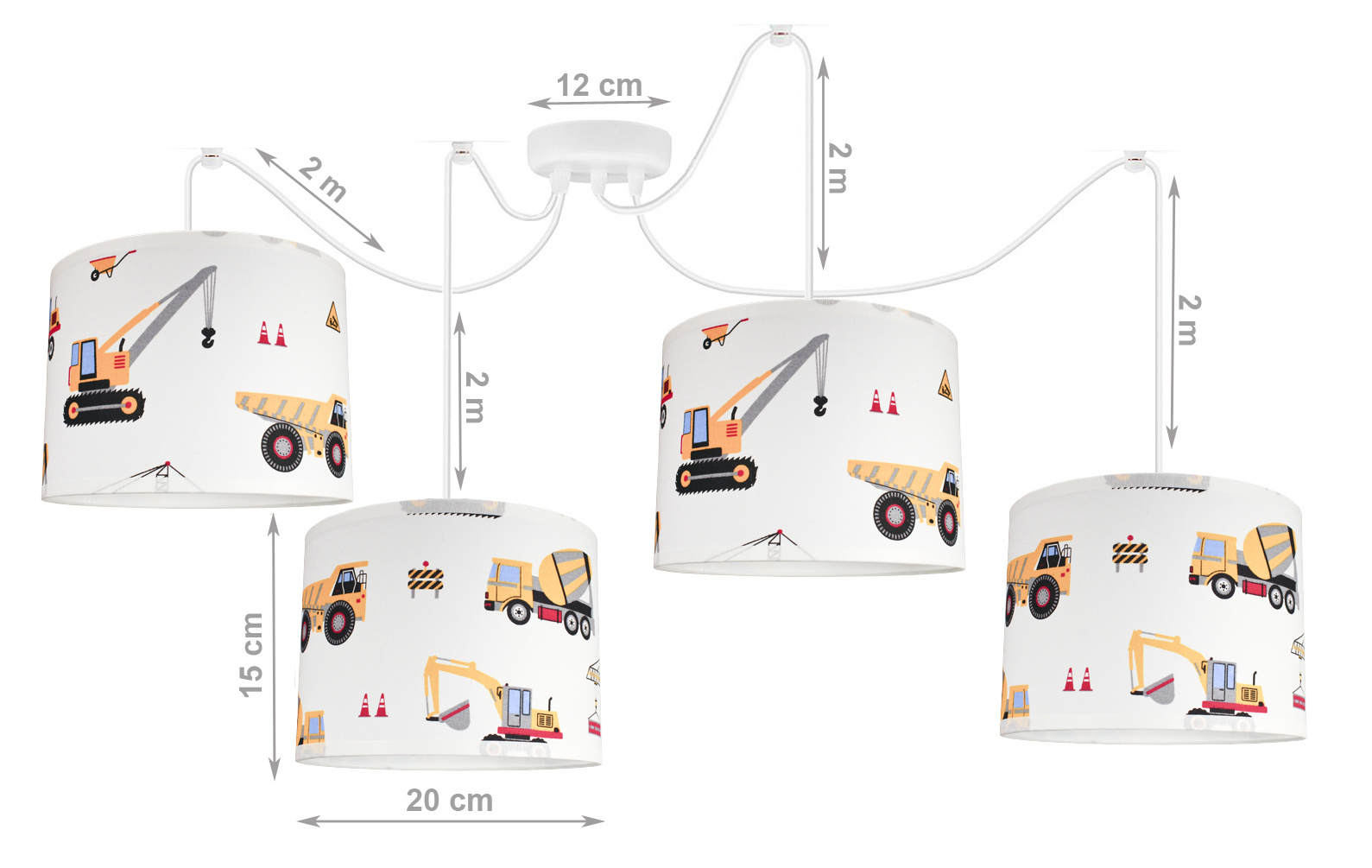 - Dodaj odrobinę zabawy i kreatywności do pokoju swojego dziecka dzięki tej uroczej lampie sufitowej z kolorowym abażurem ozdobionym wzorami maszyn budowlanych! Idealna dla małych miłośników koparek, betoniarek i dźwigów – lampa stanie się wyjątkowym akcent